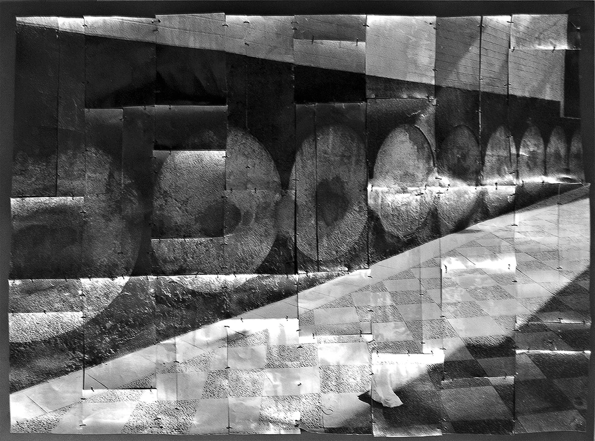 I began working with two imposed constraints: black and white and only use circles and squares to distill stories of vulnerability and strength into simple form. The work became "unconstrained" as I composited subsequent [non] circles and [non] squares with images from my mind, scanned cloth, my home, and world travels. The work below was included in a solo exhibition titled, “inconstraint/unconstrained: paper, steel, print and stitch.